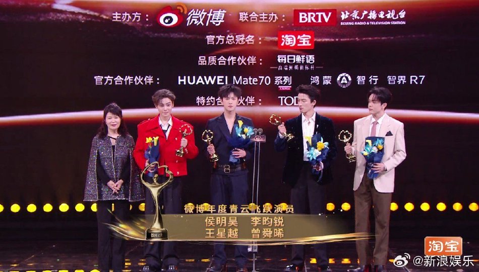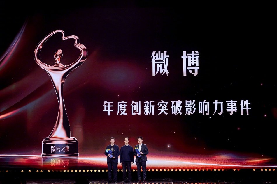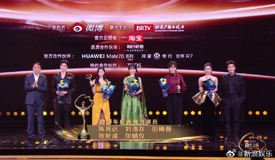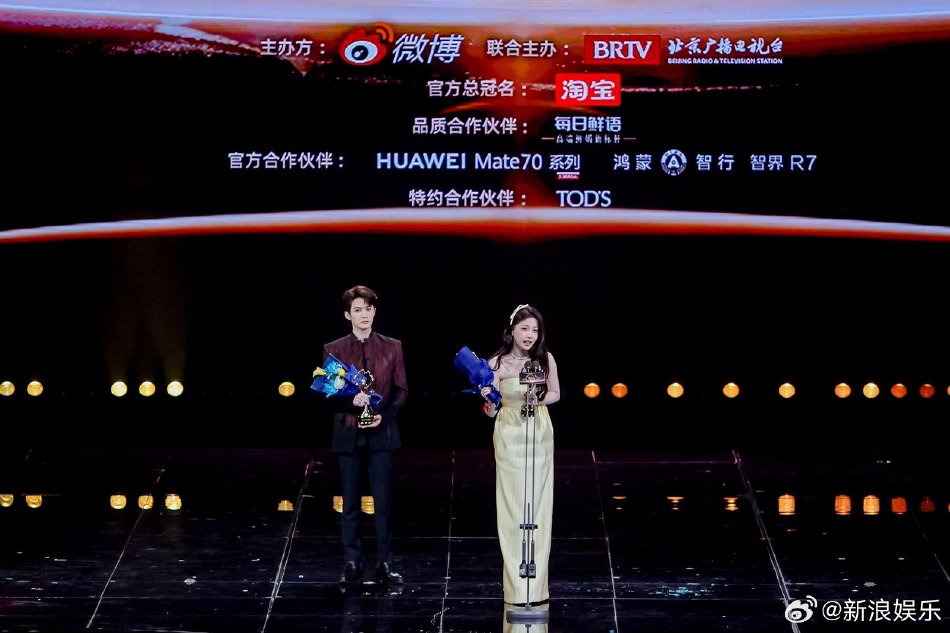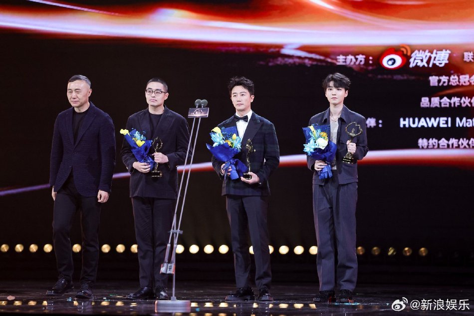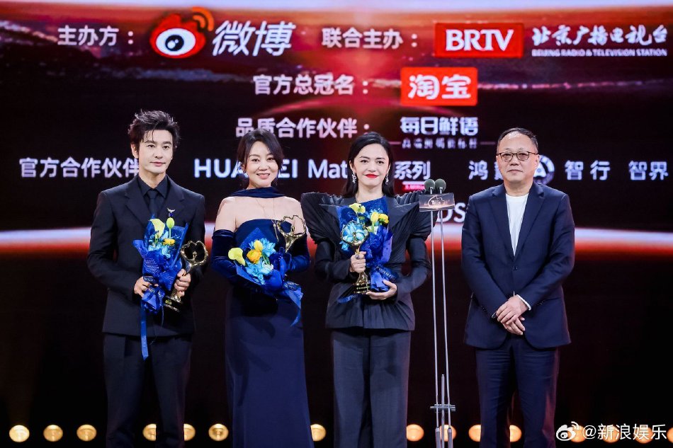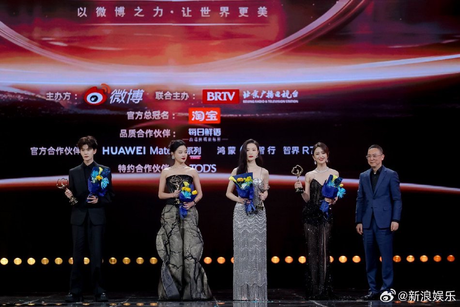 沈腾获得微博KING,赵丽颖获得微博QUEEN,新浪集团董事长兼CEO、微博董事长曹国伟见证此刻。