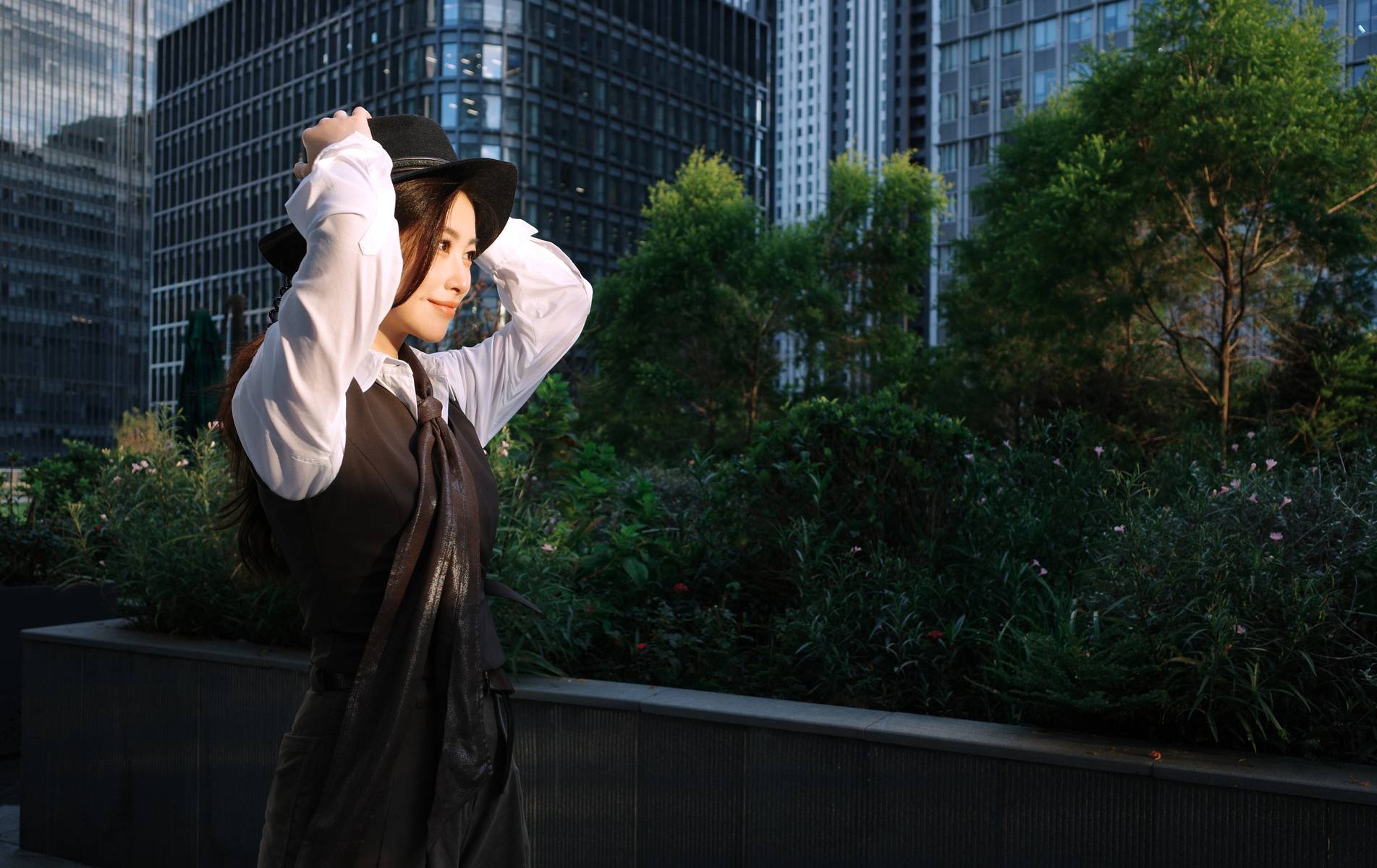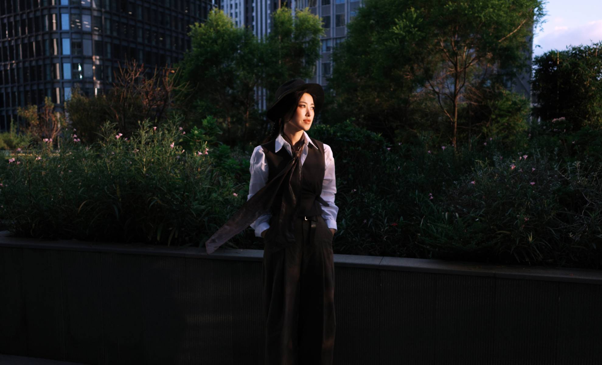 朱珠手拿玫瑰花笑眼动人 双手插兜帅气随性