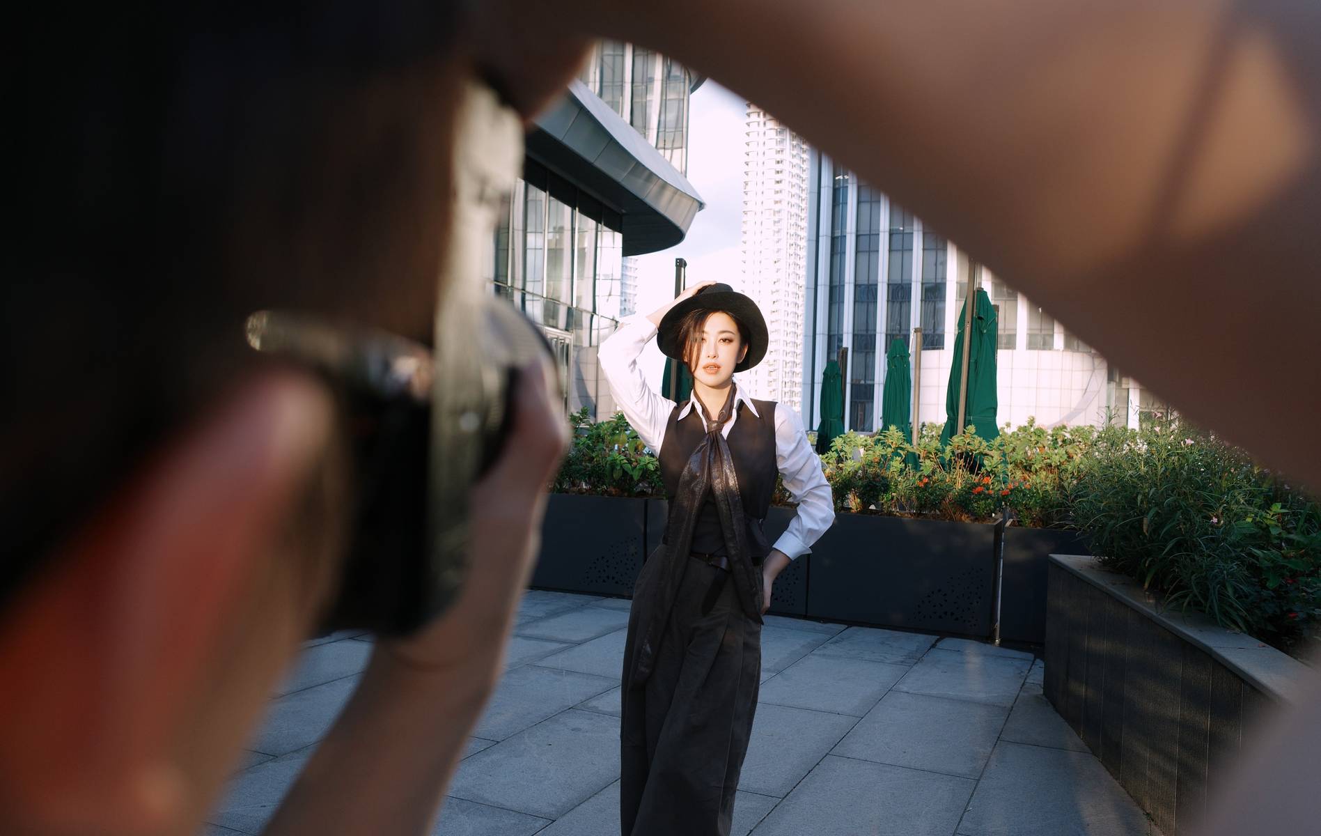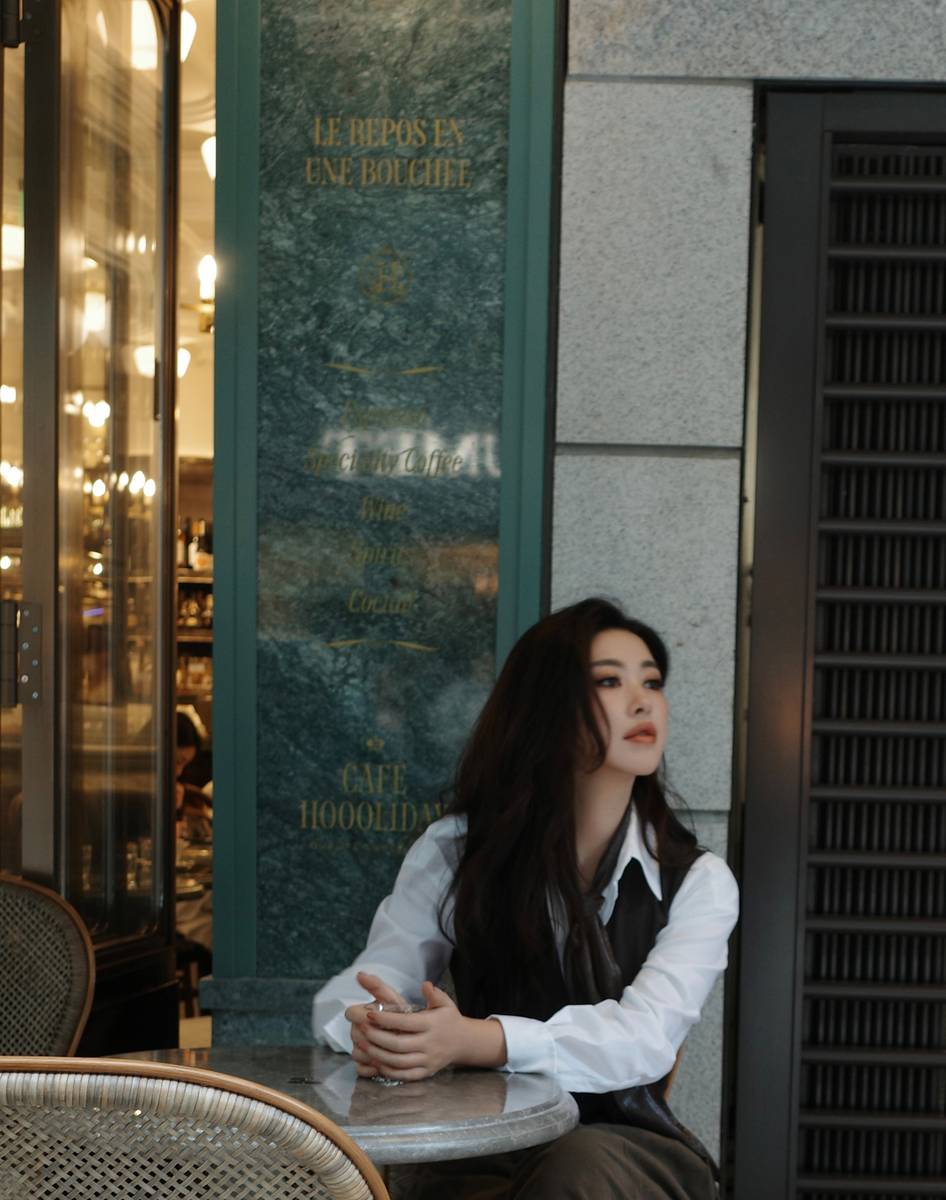 10月23日,朱珠在社交平台分享一组拍摄花絮图。图中,朱珠穿着白衬衫,摆弄花束,优雅迷人。